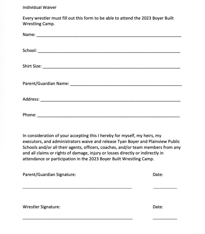 Email waiver to Tyan Boyer at tyanboyer@gmail.com. Cost $50/wrestler, shirt included if registration is returned by May 31st. Cash, Checks or Venmo will be accepted. Make checks out to Tyan Boyer.